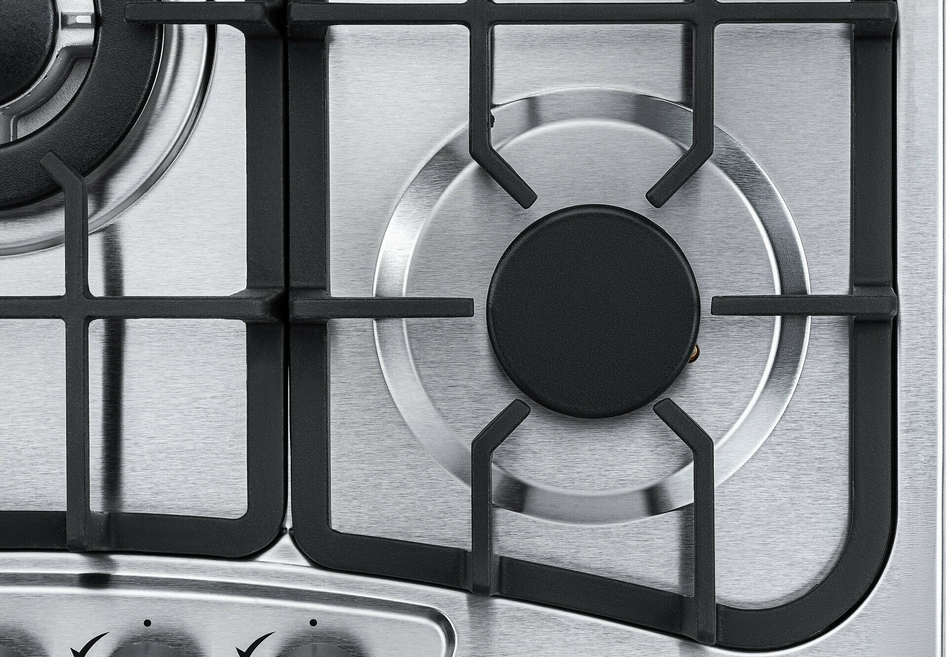 | Плюсы: | Нержавейка, автоподжиг, чугунные решётки, 5 конфорок |