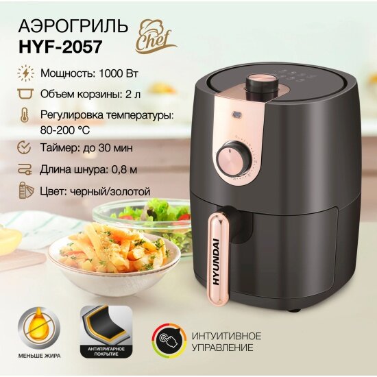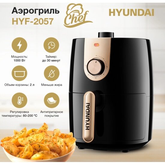 СохранитьАэрогриль Hyundai HYF-2057 черный/золотистый интересное: