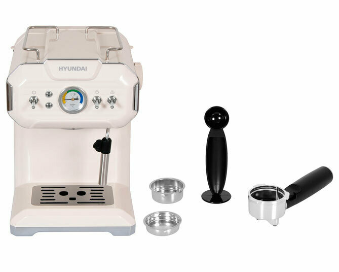 Кофеварка Hyundai HEM-5300, рожковая, бежевый / серебристый интересное:
