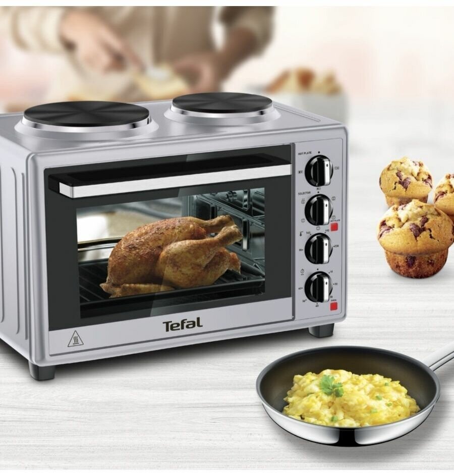 Мини-печь Tefal Optimate OF463D30, 32 л, с 2 конфорками, грилем и конвекцией, подсветкой, 3000 Вт, серебристая