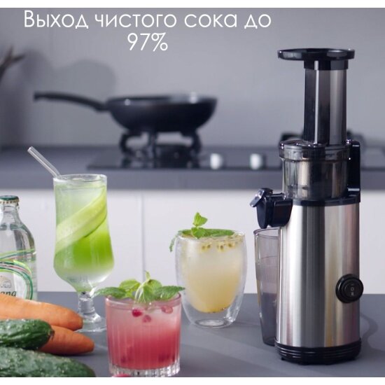 | Плюсы: | Занимает мало места, хорошо отжимает сок практически из любых фруктов и овощей, тихо работает |