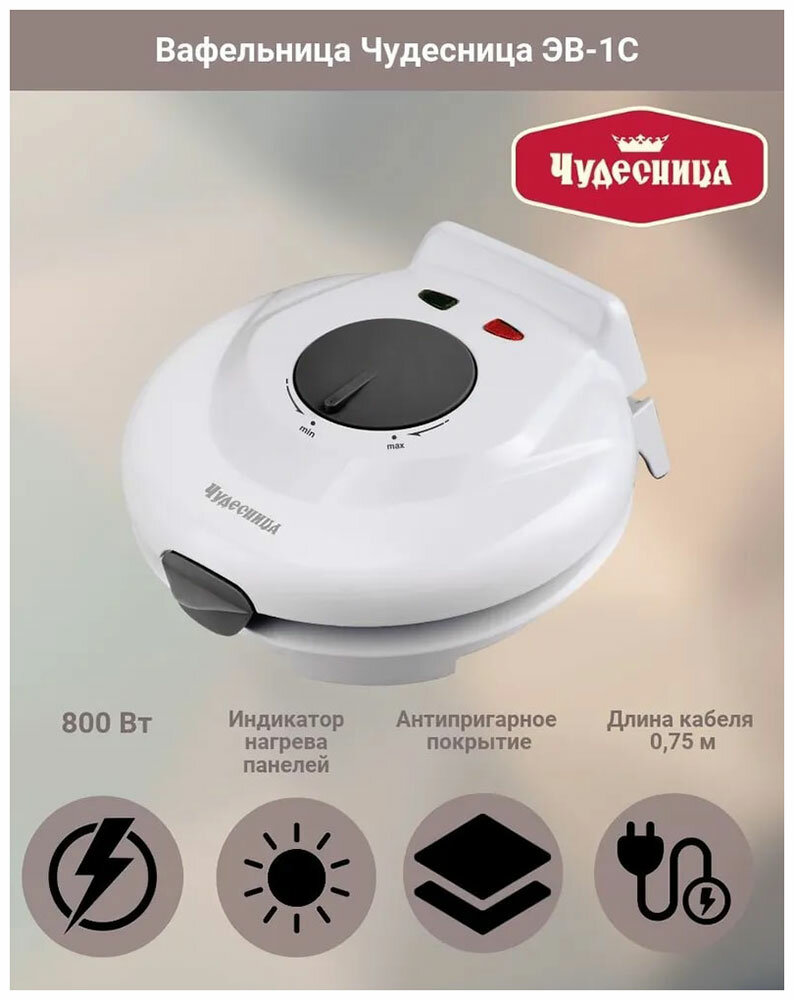 Вафельница электрическая Чудесница Эв-1c 800Вт белый/черный .
