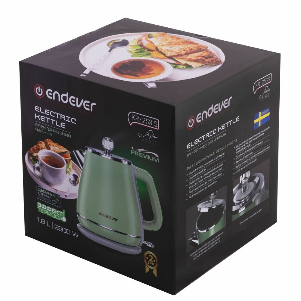 Чайник электрический с эффектом термоса Endever KR-253S/254S / 1,8л / 2200 Вт / двойные стенки интересное: