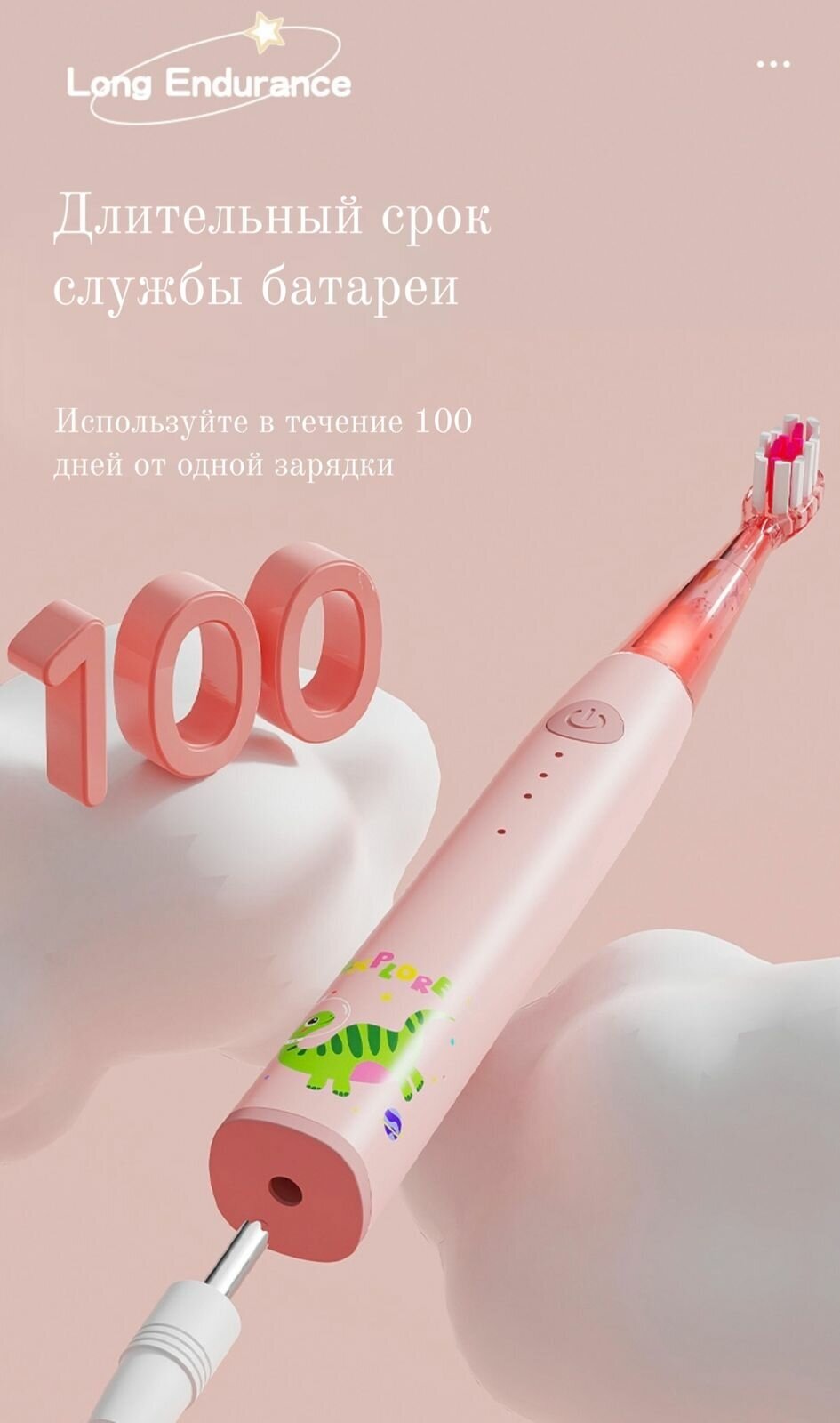 Детская электрическая зубная щетка/ VIESTORE/ Ультразвуковая щетка для детей/ 3 насадки/ Розовый интересное: