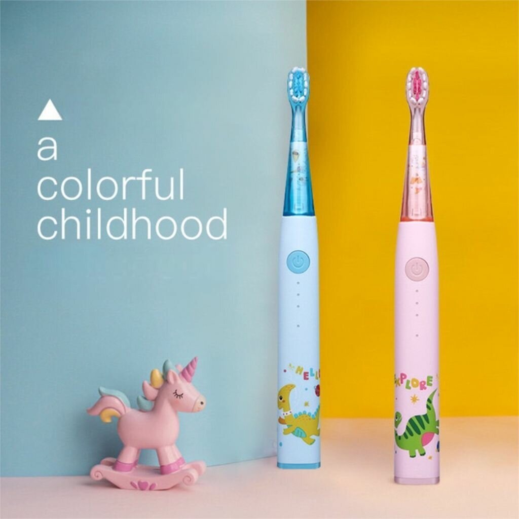 Купить Детская электрическая зубная щетка/ VIESTORE/ Ультразвуковая щетка для детей/ 3 насадки/ Розовый