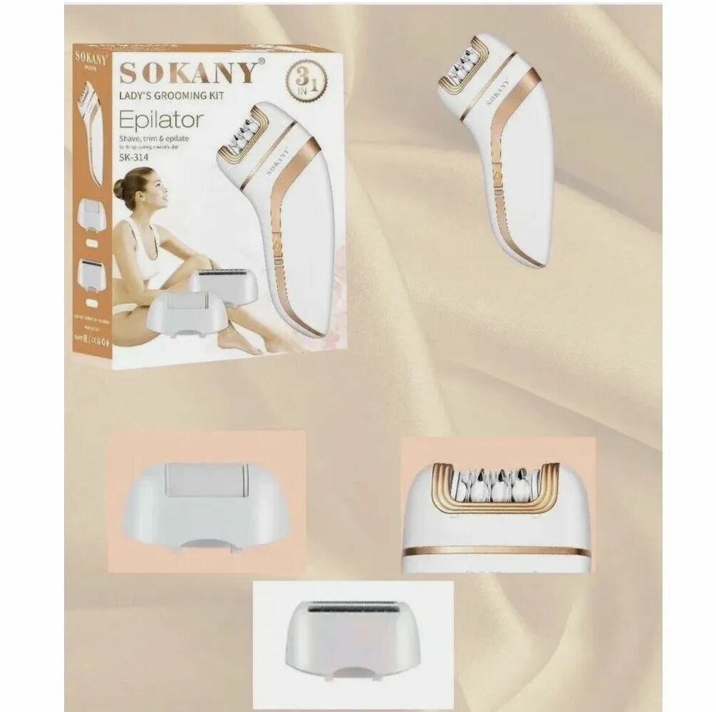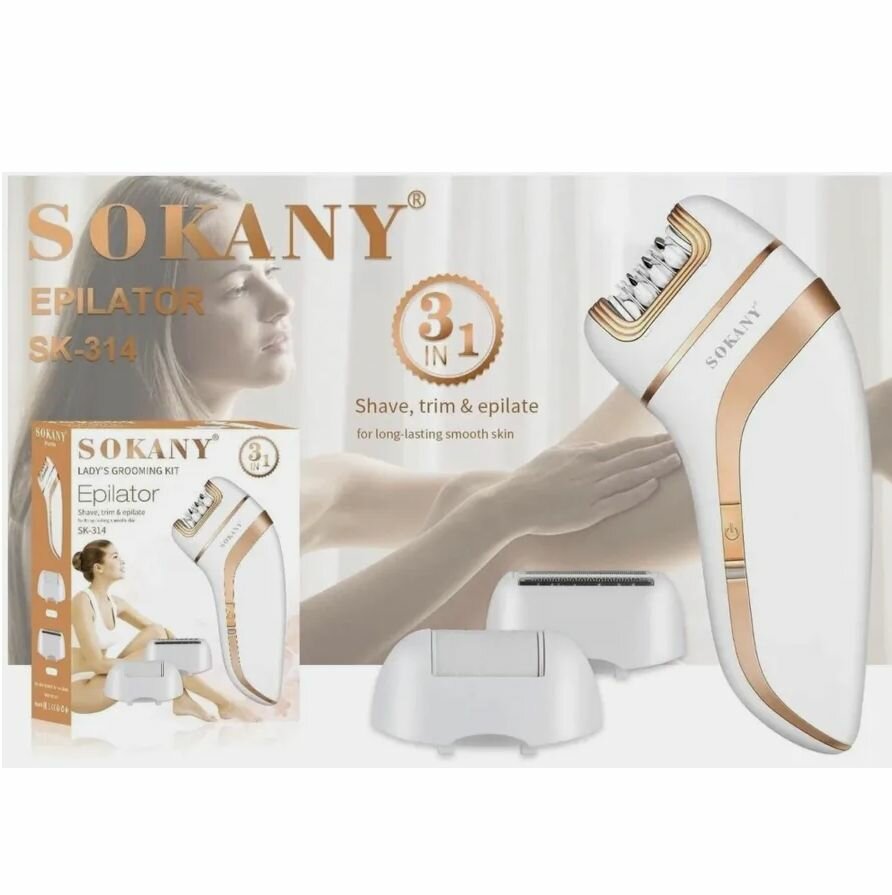 Профессиональный Эпилятор для тела, ног, лица/ Эпилятор женский, для удаления волос 3/1 c насадкой для пяток и шлифовки ступней/SOKANY SK-314