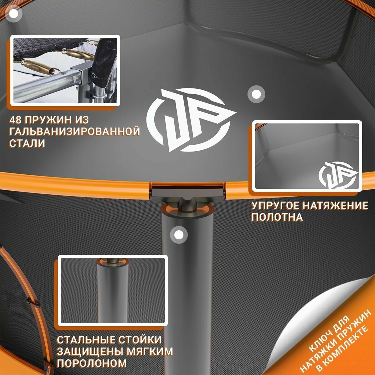 Купить Батут каркасный детский Jump Power 244 см оранжевый с защитной сеткой/баскетбольное кольцо+мяч/ железный уличный /максимальная нагрузка 120кг