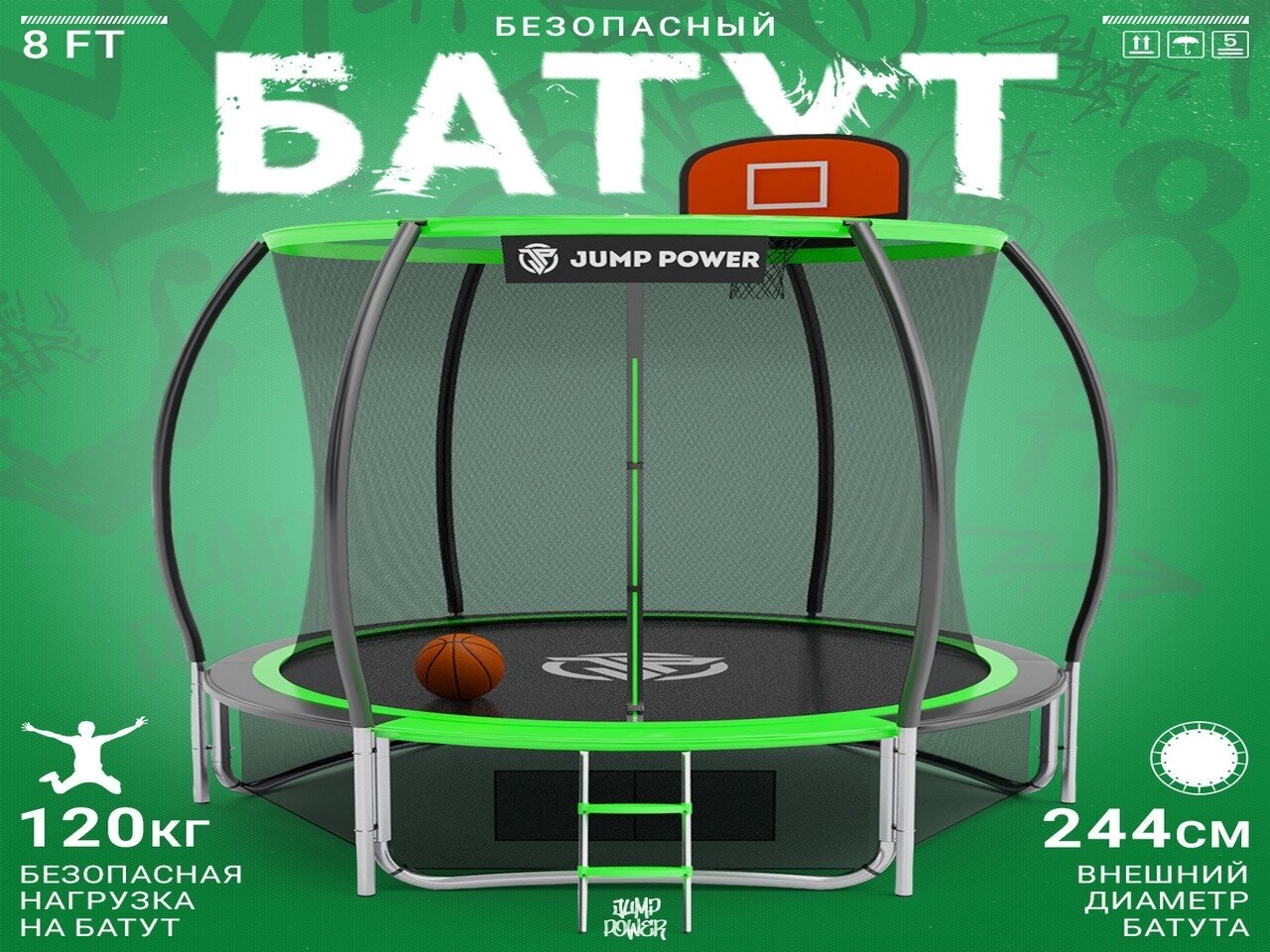 Каркасный БатутJump Power 8 ft Pro Inside Basket Green 244 см интересное: