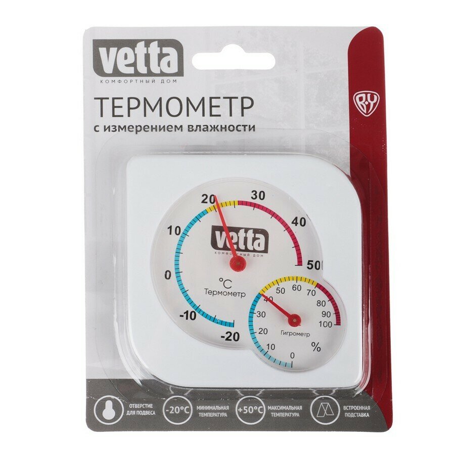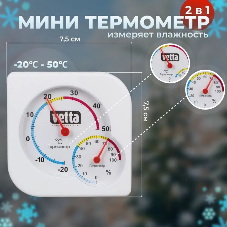 Термометр мини, измерение влажности, 7,5х7,5 см, Vetta