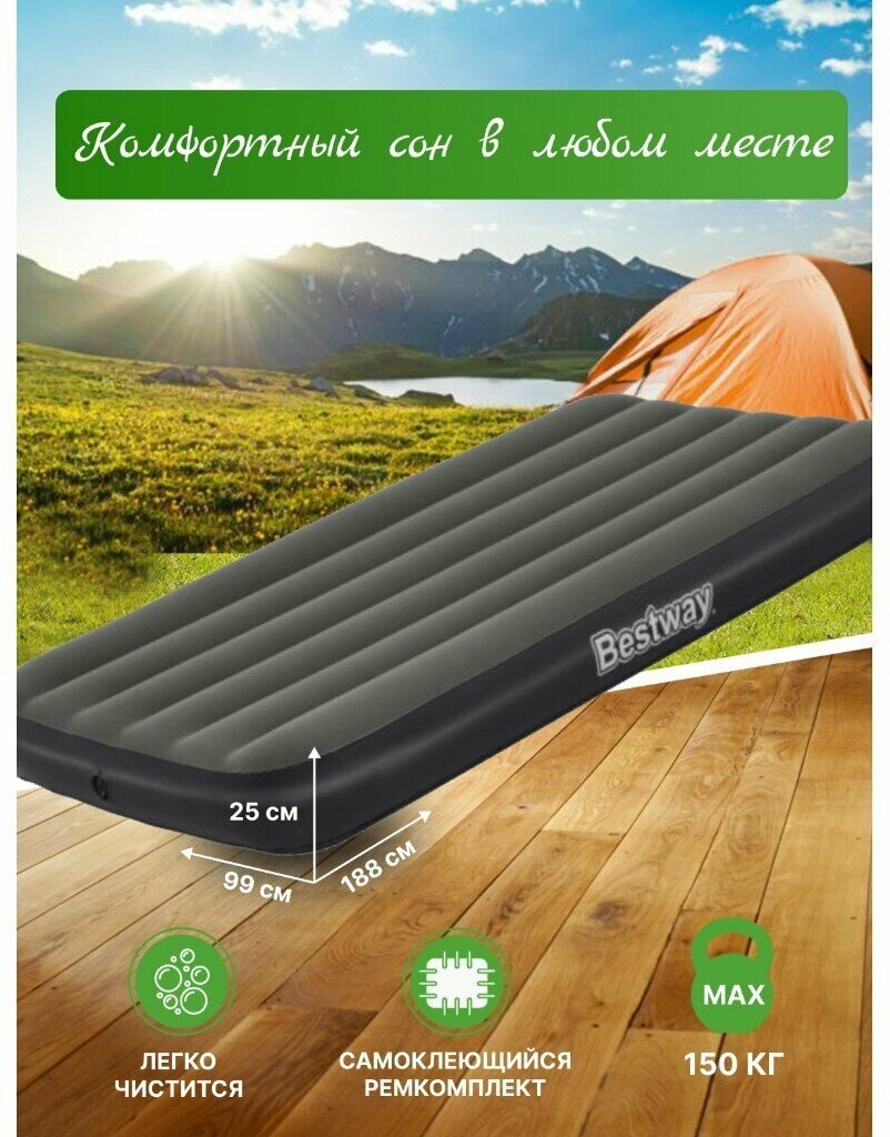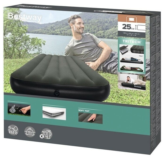 Матрас надувной Bestway, 188х99х25 см, Tritech Air, 6713L, без насоса, флокированный, 150 кг