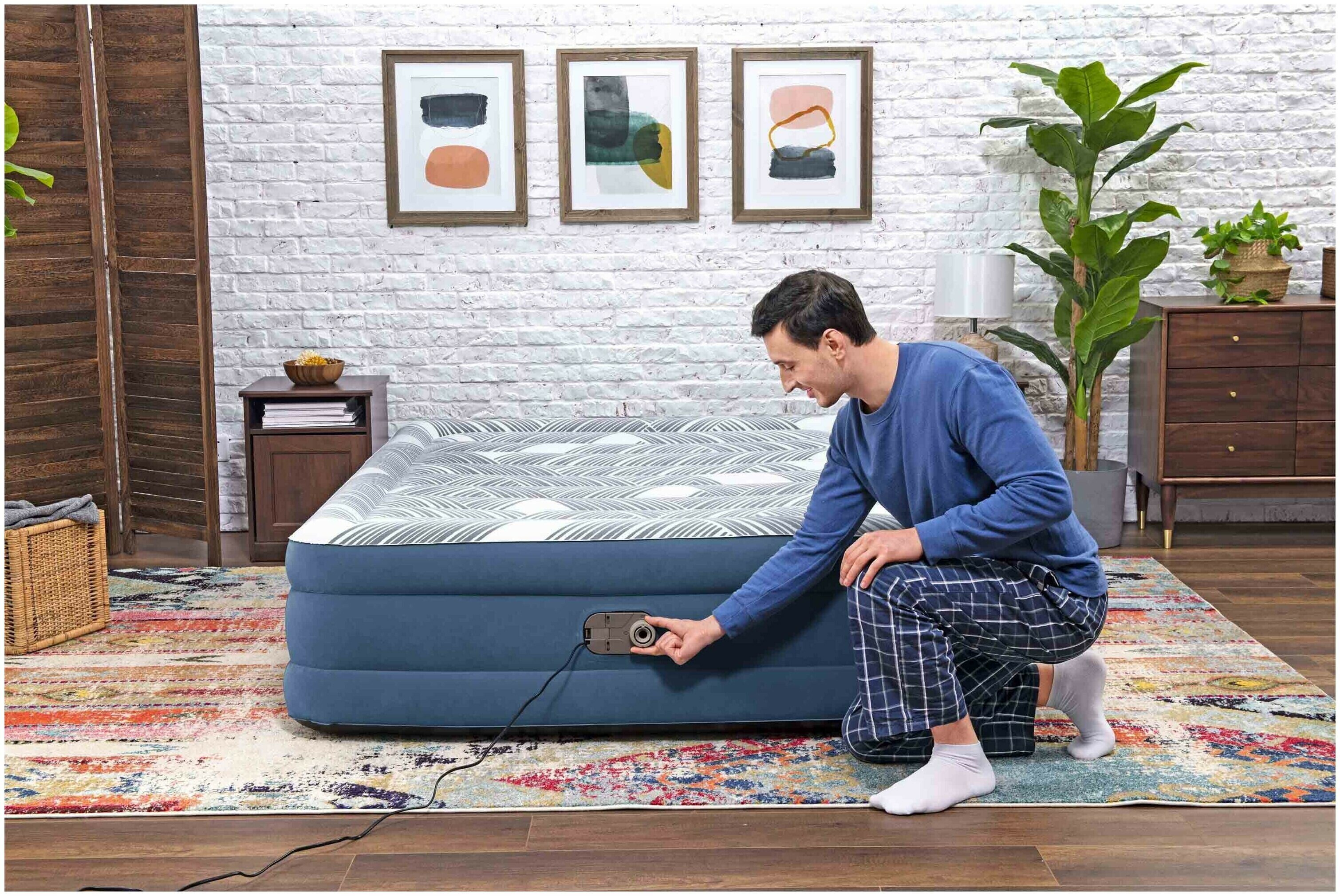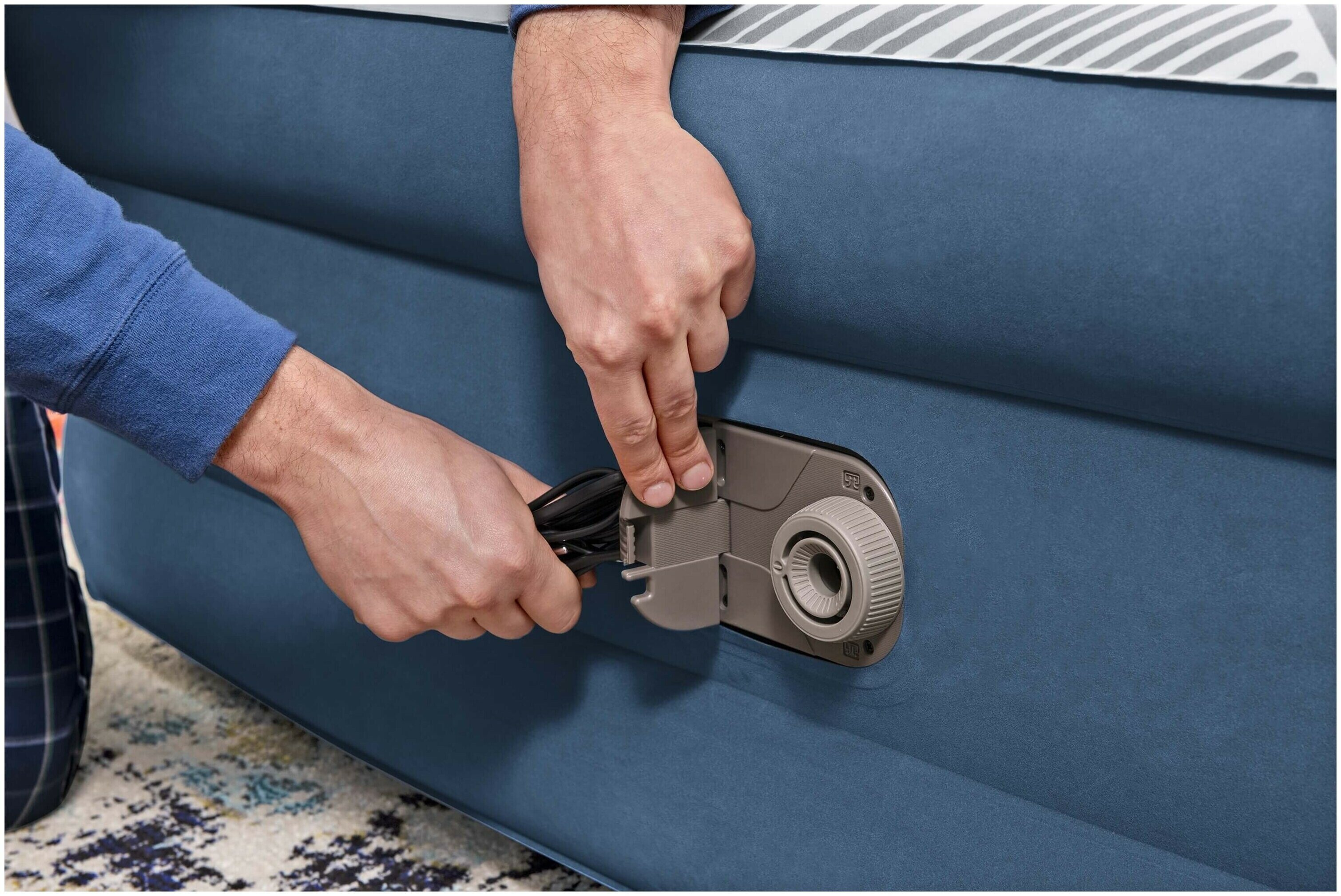 Надувная кровать Bestway Tritech Fashion Flock 6713C, 203х152 см, серый/синий