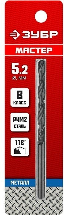 Купить Сверло по металлу ЗУБР мастер 5.2х86мм, сталь Р4М2, класс В, 29605-5.2