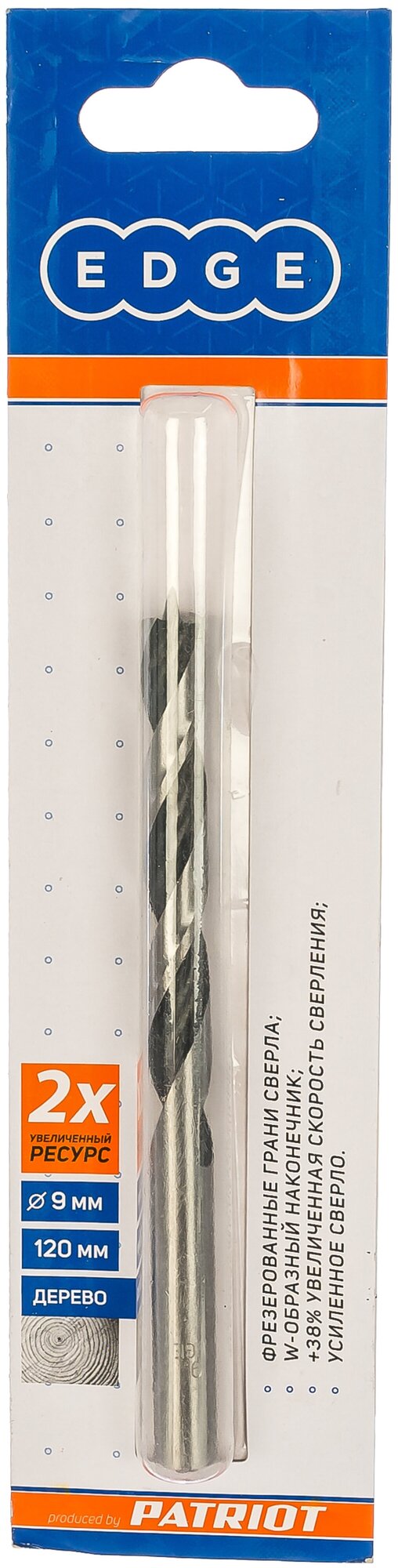 Сверло по дереву спиральное W-образная заточка 9 мм EDGE by PATRIOT 815010076