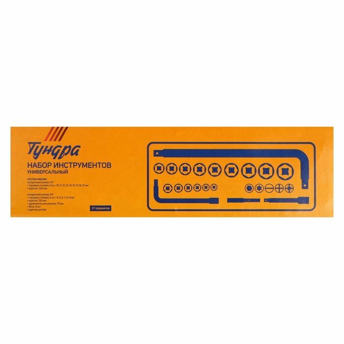 Набор инструментов в кейсе тундра, автомобильный, 1/2" и 1/4", 27 предметов./В упаковке шт: 1