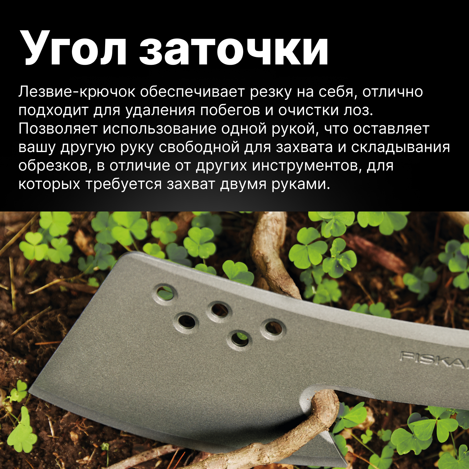непонятно назначение данного инструмента, для рубки сучков и мелкой поросли слишком неправильно заточен сам себя тормозит в дереве. для заготовки дров или колки слабоват по длине и массе. Может для мяса сгодится... рекомендую старый проверенный сучкоруб от фискарс. |