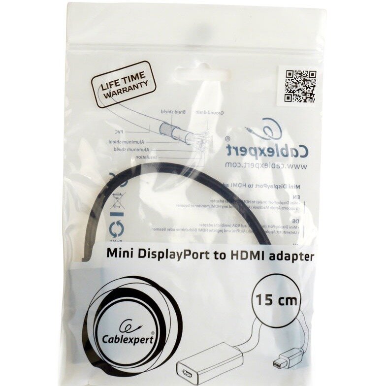 Переходник miniDisplayPort -> Hdmi, Cablexpert A-mDPM-HDMIF4K-01, 4K, 20M/19F, кабель 15см, черный, .