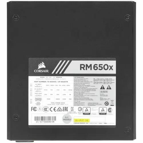 Блок питания Corsair RM650x (CP-9020178-EU) черный - 650 Вт, 80+Gold, EPS12V, APFC, 20 + 4 pin, 4+4 pin CPU, 9 SATA, 6+2 pin x4 PCI-E