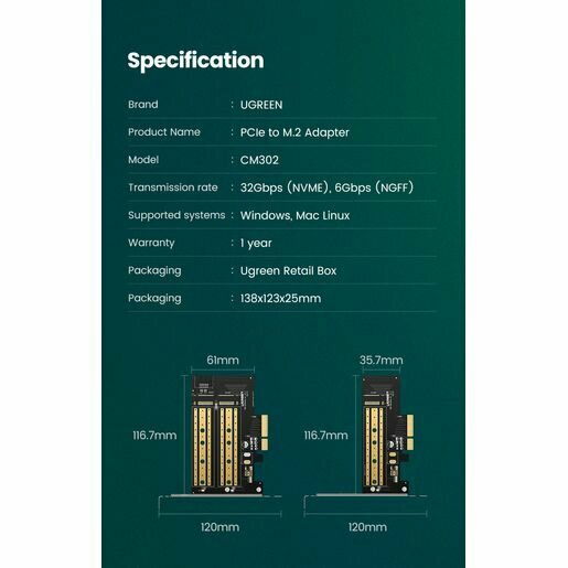 Ниже Вы можете прочитать отзывы на Контроллер Ugreen CM302 M.2 M-Key + M.2 B-Key - PCI-E3.0X4 Express Card with M.2 SATA 70504, ознакомится с подробными характеристиками, посмотреть интересные обзоры и фотографии на Контроллер Ugreen CM302 M.2 M-Key + M.2 B-Key - PCI-E3.0X4 Express Card with M.2 SATA 70504.