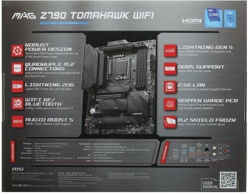 Материнская плата MSI MAG Z790 TOMAHAWK WIFI Socket 1700 Z790 4xDDR5 2xPCI-E 16x 1xPCI-E 1x 7xSATA III ATX Retail