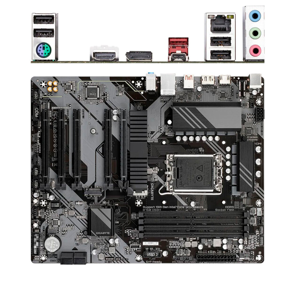 GIGABYTE B760 DS3H, LGA1700, B760, 4*DDR5, DP+HDMI, 4 SATA 6 Гб/с, M2, Audio, Gb LAN, USB 3.2, USB 2.0, Type-C, COM*1 port, ATX