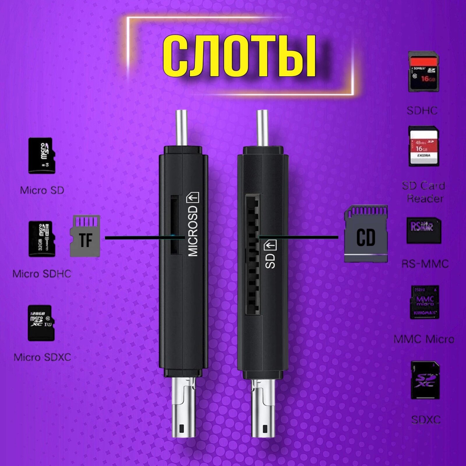 | Поддерживаемые форматы | MMC, SD, SDHC, SDXC, microSD, microSDHC, microSDXC |