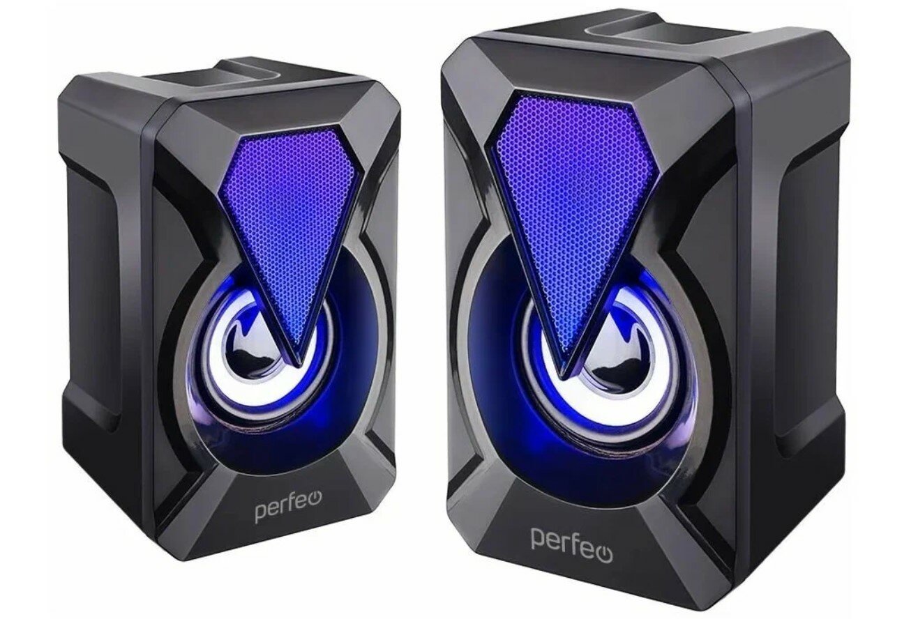 Perfeo колонки "FLAMES", 2.0, мощность 2х3 Вт, USB, чёрн, Game Design, LED подсветка 7 цв