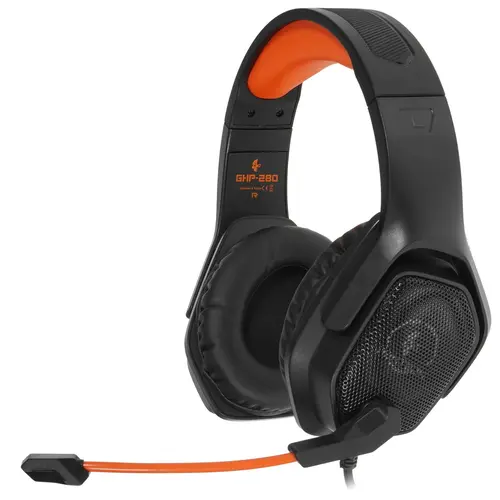 Игровая гарнитура Jet.A PANTEON GHP-280 черно-оранж (2х3,5мм mini jack, многоцветная LED, звук 2.0)
