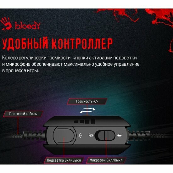 Игровые наушники с микрофоном A4Tech Bloody G575 PUNK, Подсветка RGB, мониторные 7.1, 2м. USB, черный