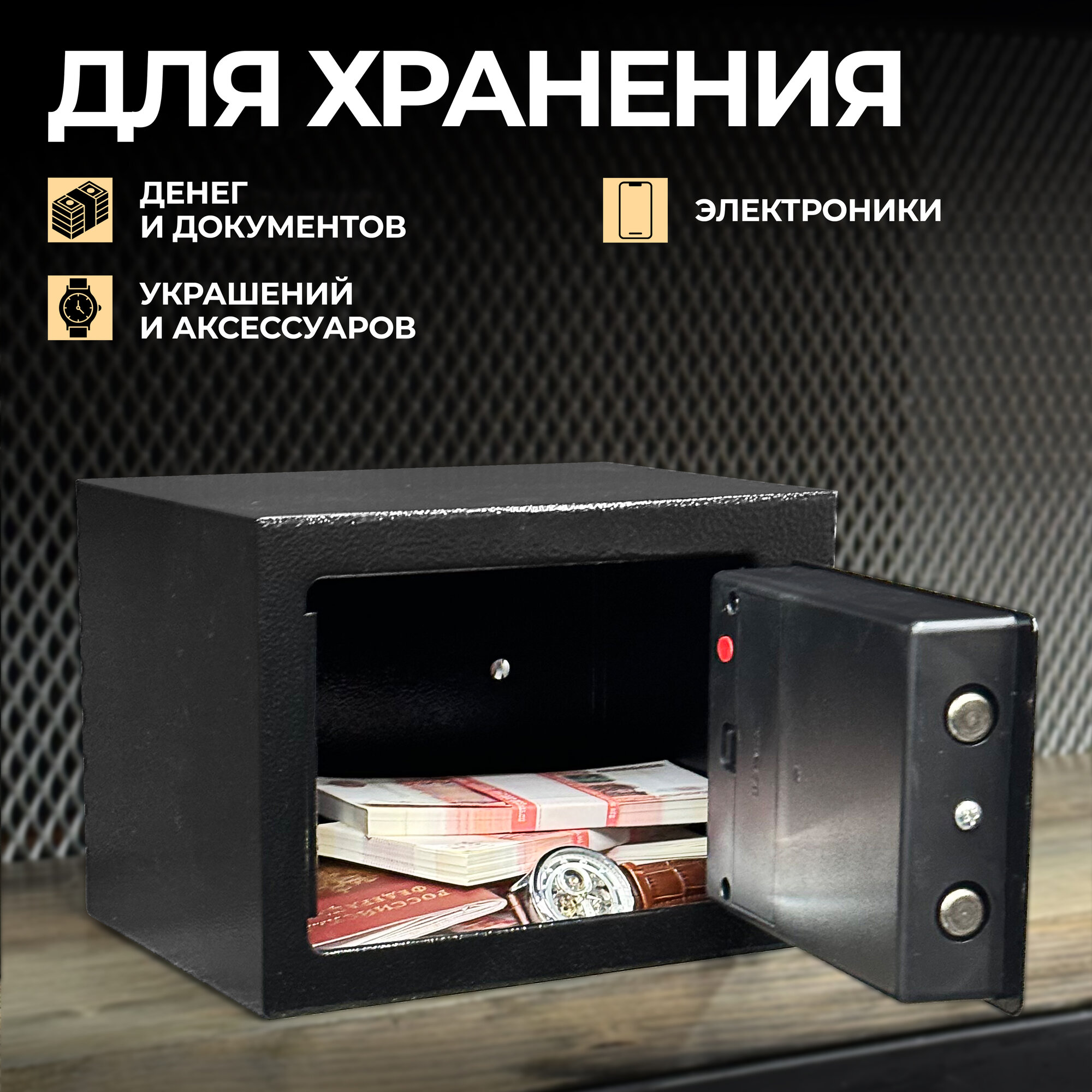 Сейф маленький (мини), мебельный, для хранения денег и документов, с электронным кодовым замком, черный