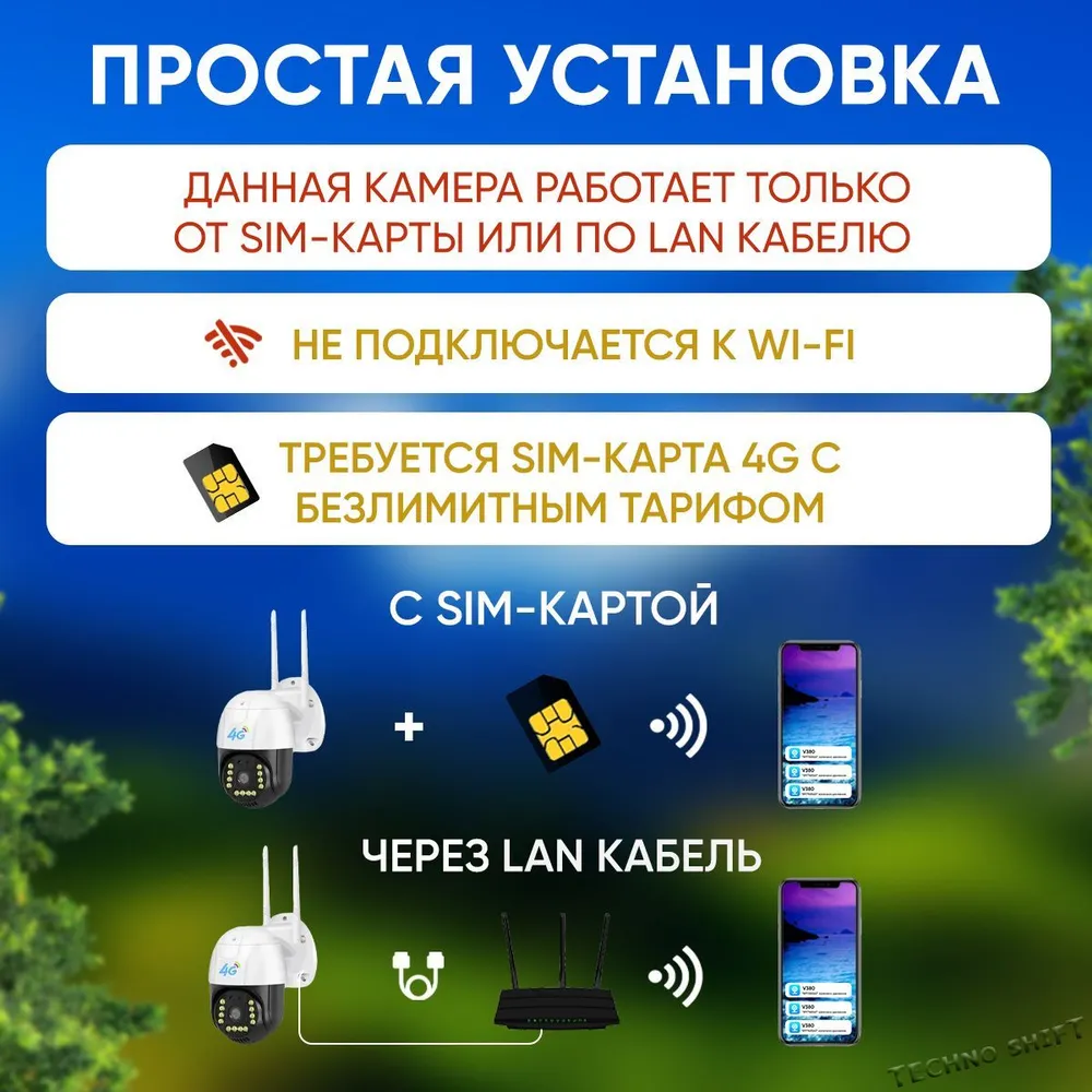 Уличная беспроводная поворотная камера видеонаблюдения на сим карте 4G RNR с цветной ночной съемкой