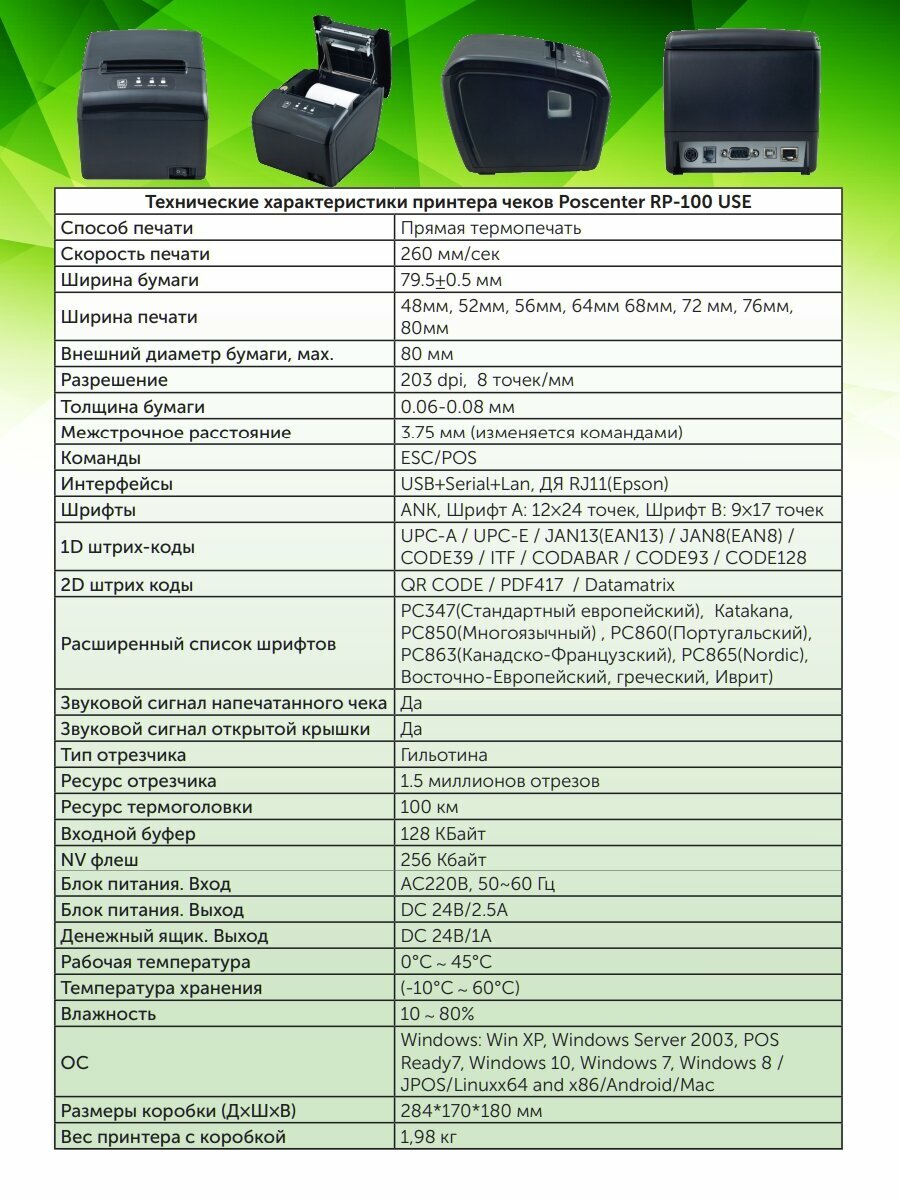 Принтер чеков POScenter RP-100 USE, черный интересное: