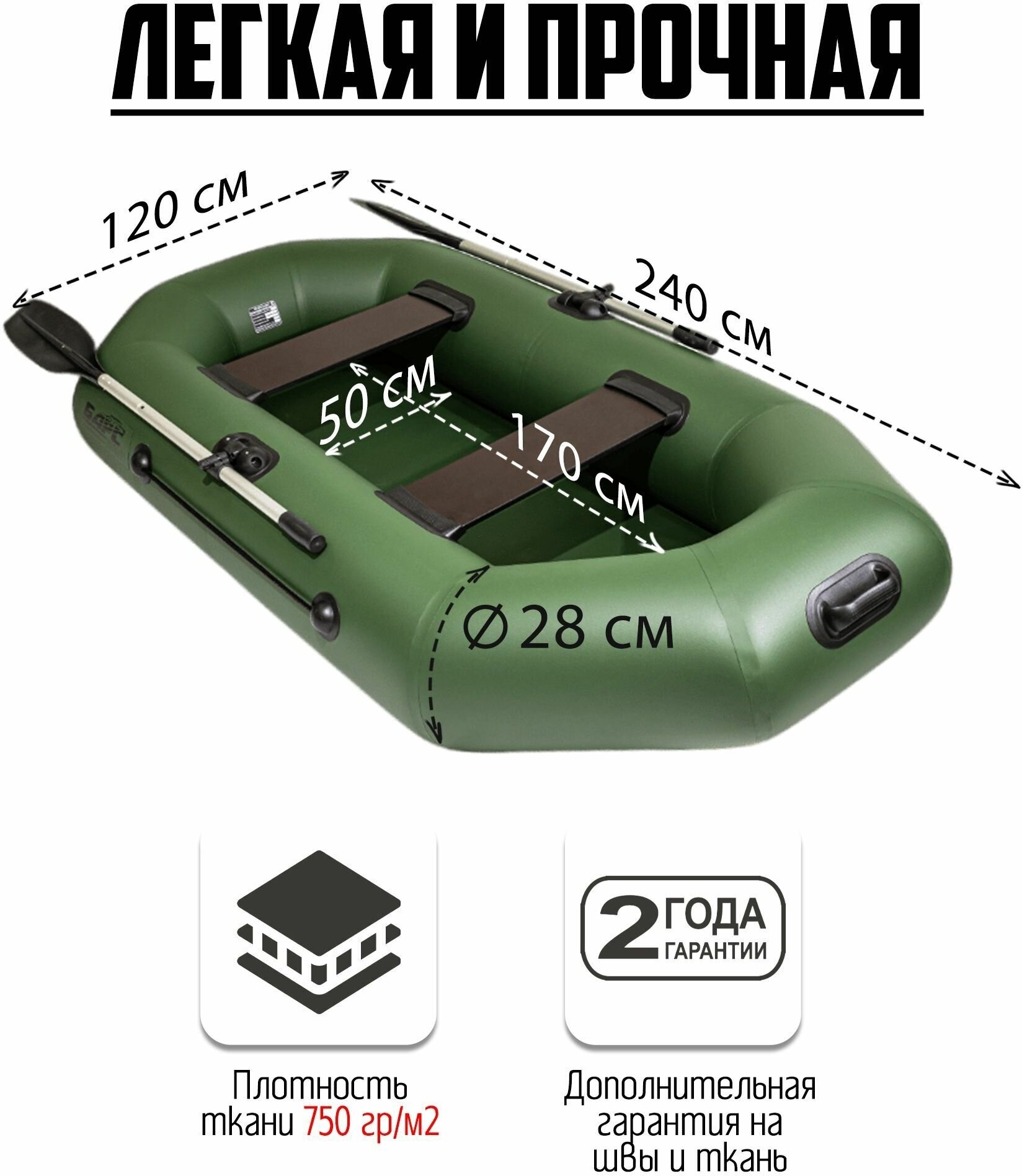 Лодка надувная для рыбалки Барс-240, двухместная, зелёная