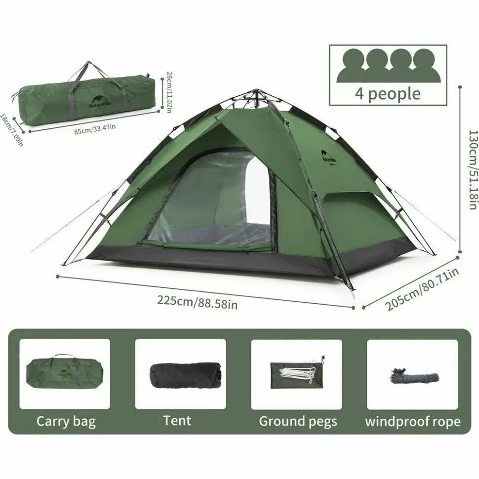 Палатка-автомат Naturehike NH21ZP008 3-4 forest green интересное: