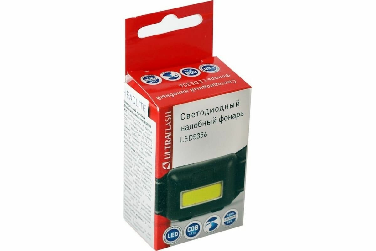 Налобный фонарь Ultraflash LED5356 черный 0,95Вт COB LED, 3 режима 3хAAA, пластик 14641