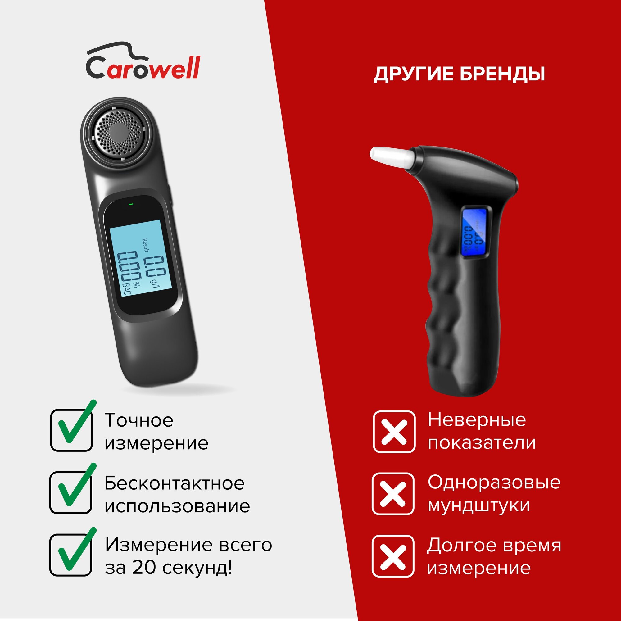 Алкотестер Carowell для водителей высокоточный, бесконтактный с аккумулятором интересное: