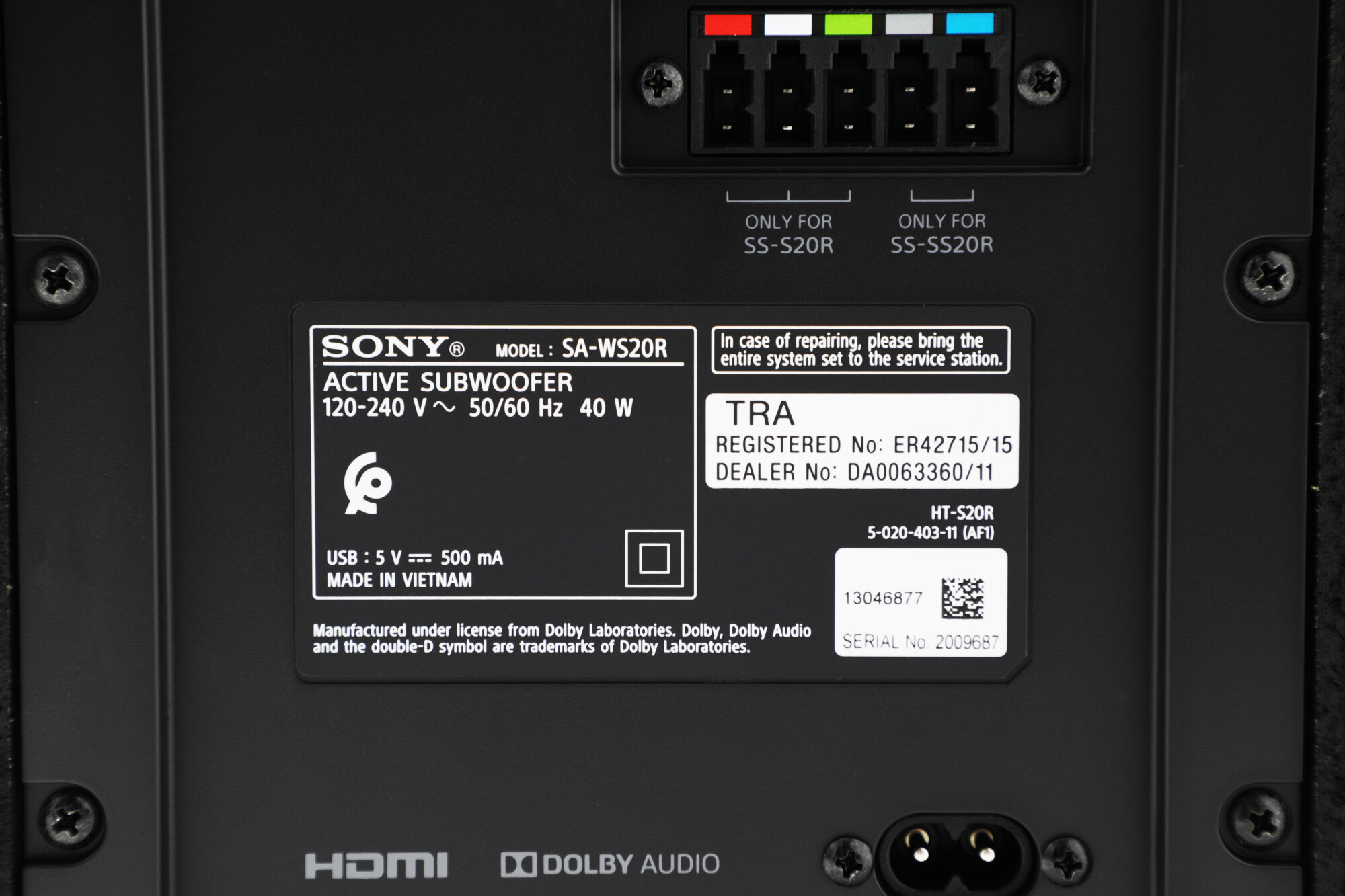 Сабвуфер Sony HT-S20R, 4 колонки, черный