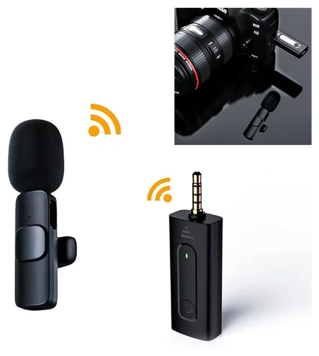Микрофон беспроводной петличный черный конденсаторный K35