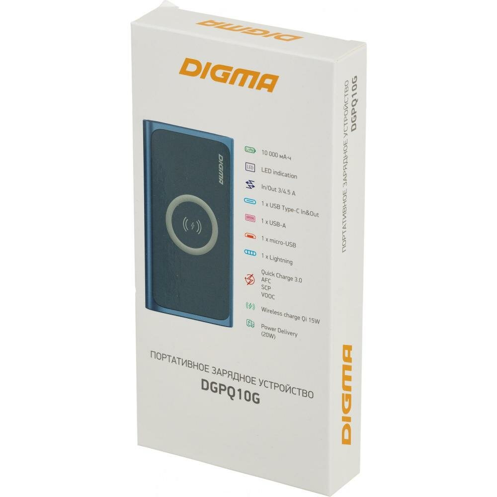 Внешний аккумулятор (Power Bank) Digma DGPQ10G, 10000мAч, синий [dgpq10g22cbl] интересное: