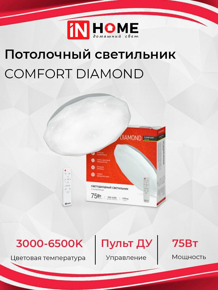 Настенно-потолочный светильник IN Home COMFORT DIAMOND 75Вт 230В 3000-6500К 6000лм 480х80мм с пультом ДУ 4690612034799