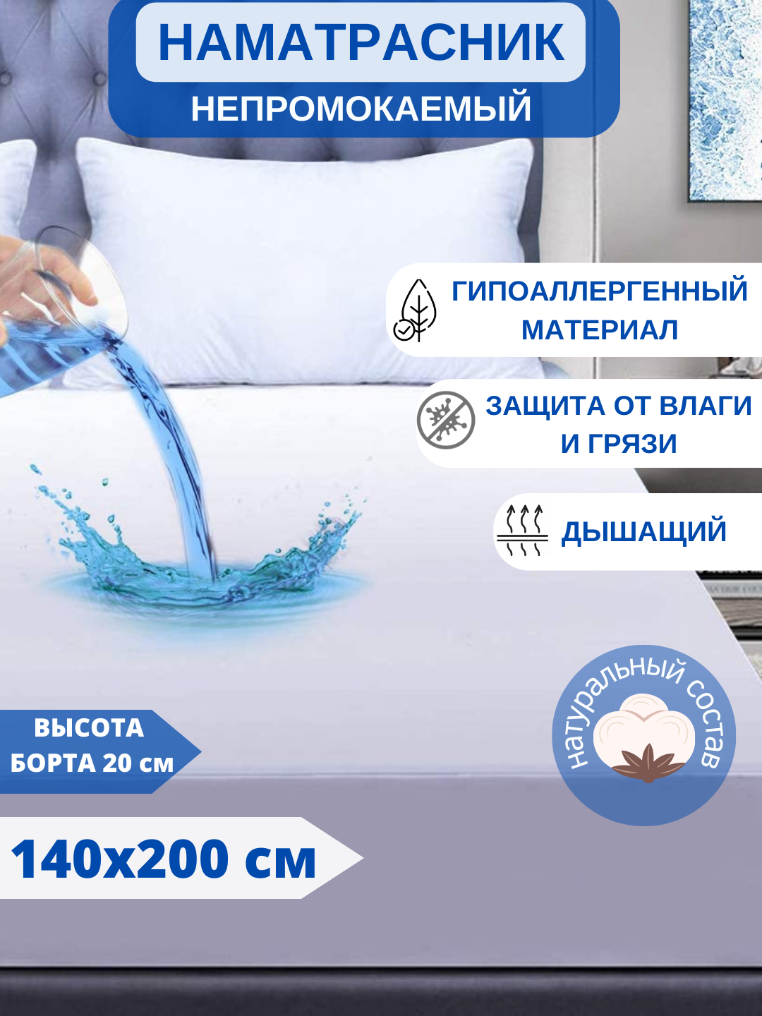 | Отзыв: | Заказ пришёл быстро, хорошо упакован, наматрасник сшит отлично, нитки не торчат. Ткань приятная. И действительно Воду не впитывает. |