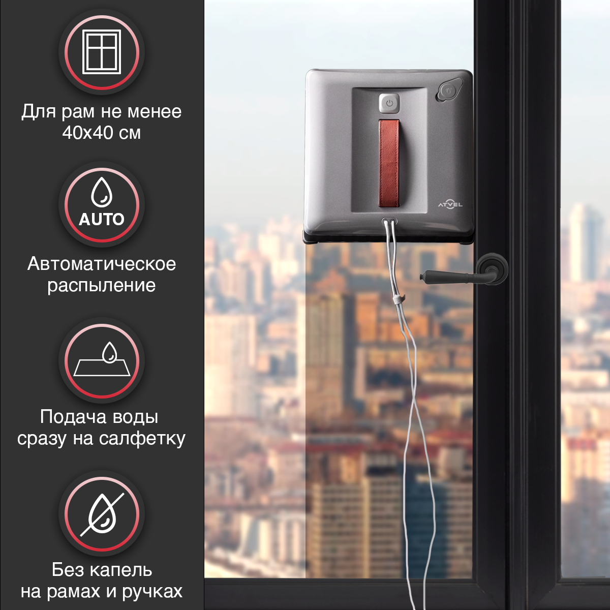 Робот мойщик окон Atvel Zorro Z7 стеклоочиститель с распылением интересное: