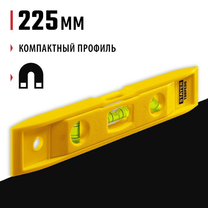 Уровень STAYER Torpedo 225мм пластмассовый с магнитом интересное: