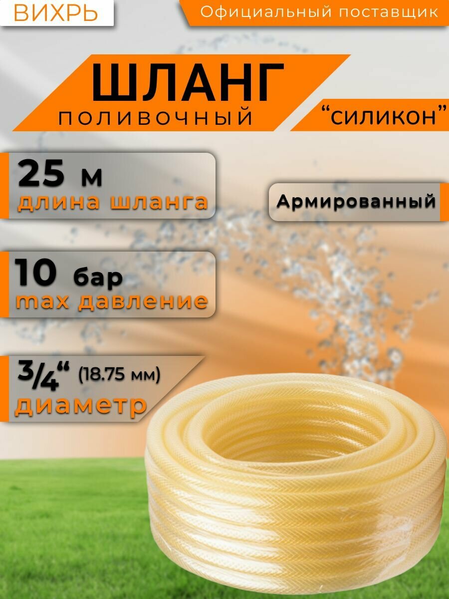Шланг поливочный Вихрь "Силикон" однослойный 3/4", 25м (прозрачный) .