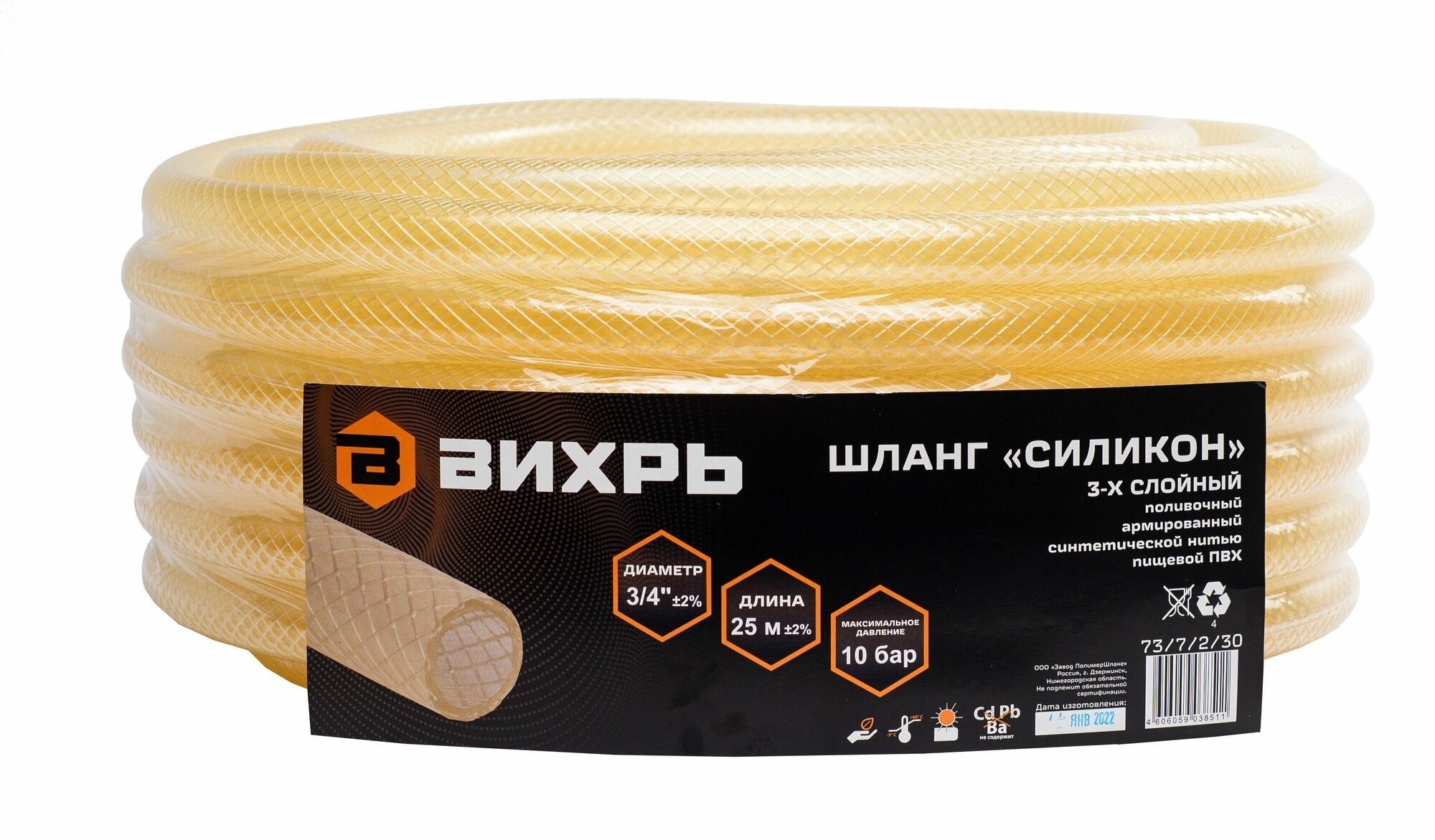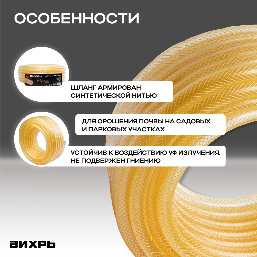 Шланг поливочный Вихрь "Силикон" трёхслойный армированный 3/4", 50м (прозрачный), 73/7/2/32