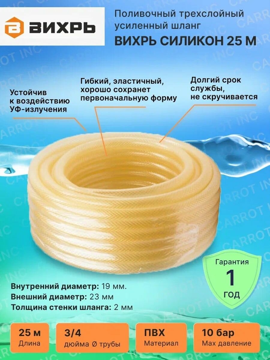 Ниже Вы можете прочитать отзывы на Шланг поливочный "Силикон" трёхслойный армированный 3/4", 25м (прозрачный) Вихрь, ознакомится с подробными характеристиками, посмотреть интересные обзоры и фотографии на Шланг поливочный "Силикон" трёхслойный армированный 3/4", 25м (прозрачный) Вихрь.