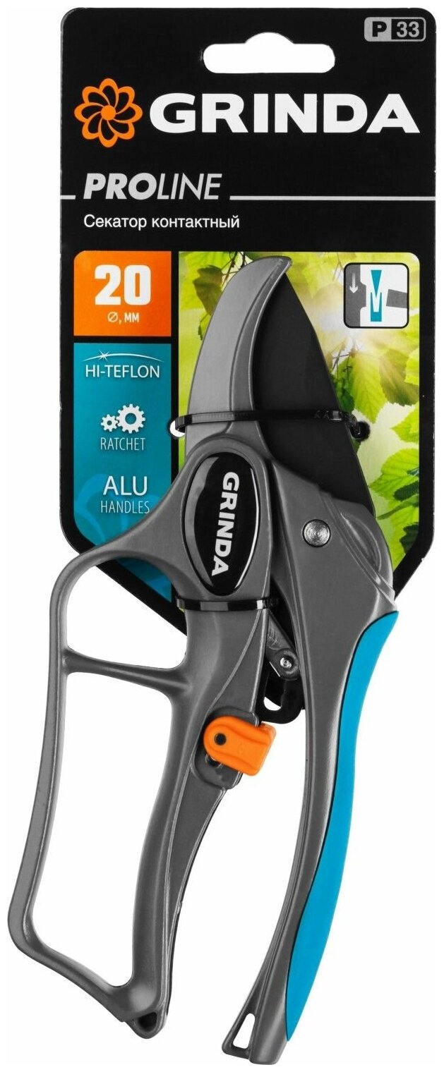Секатор контактный с храповым механизмом 200 мм Grinda PROLine 423433