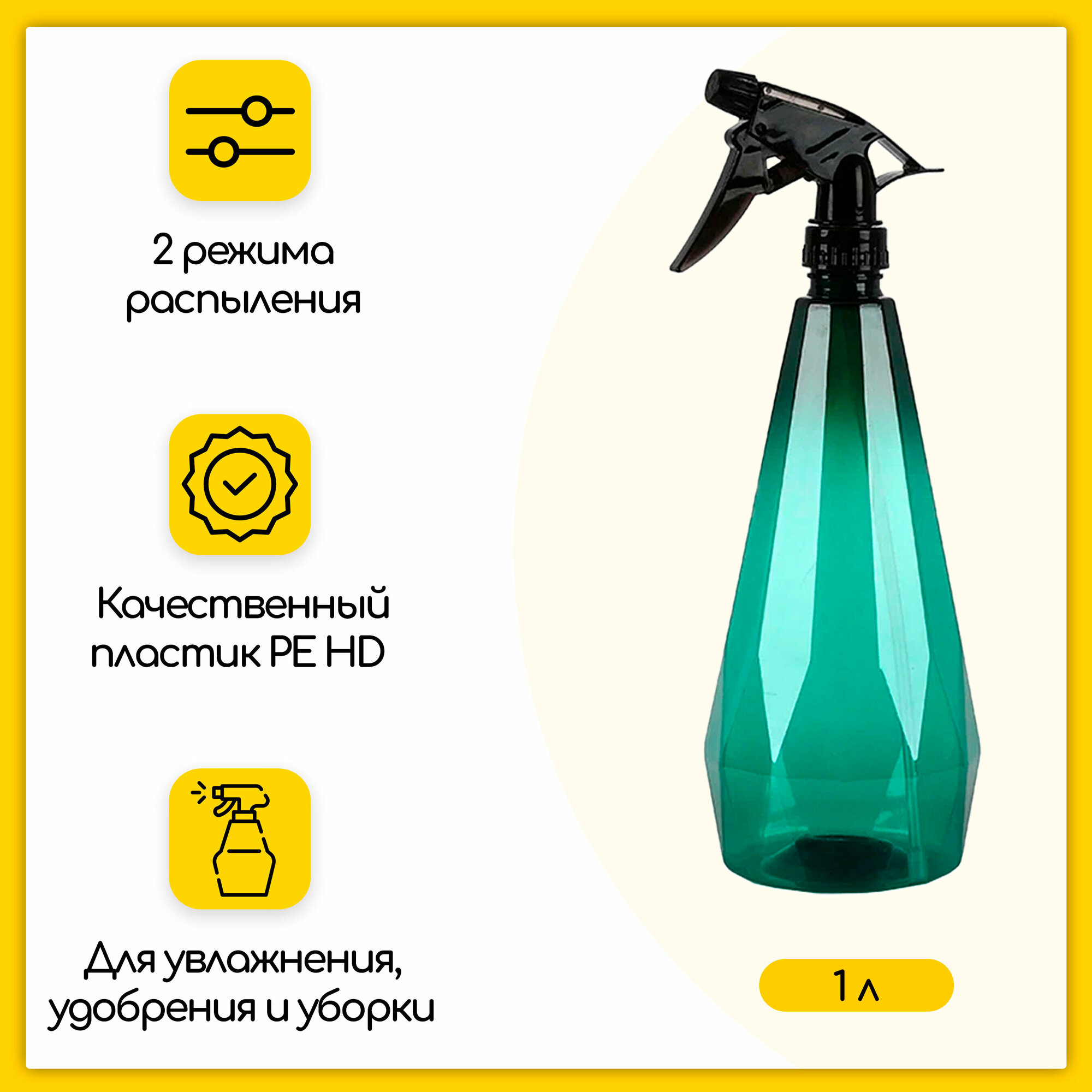 Купить Пульверизатор (опрыскиватель) 1000 мл, ручной распылитель для воды, пластиковый, зеленый
