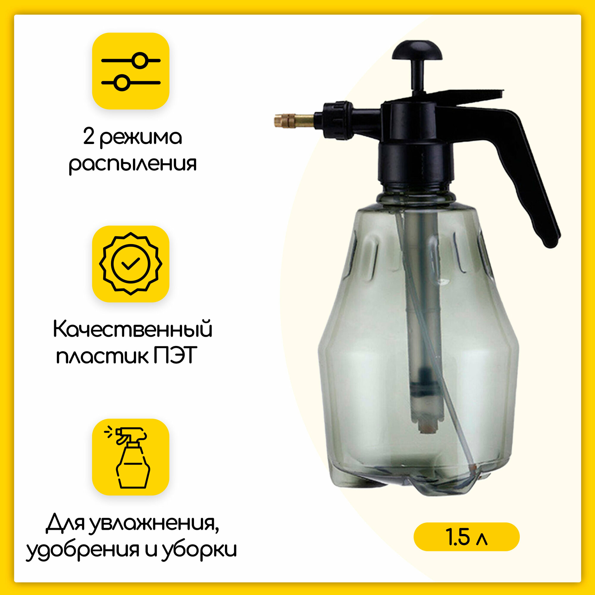 Купить Пульверизатор 1500 мл, опрыскиватель садовый, распылитель помповый, с регулируемой форсункой, черный
