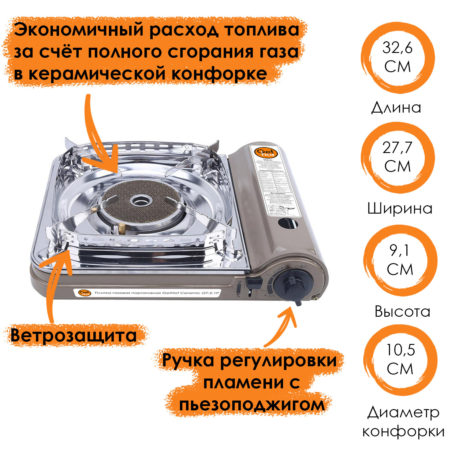 Плитка газовая туристическая портативная GetHof Ceramic GT-2,1P интересное: