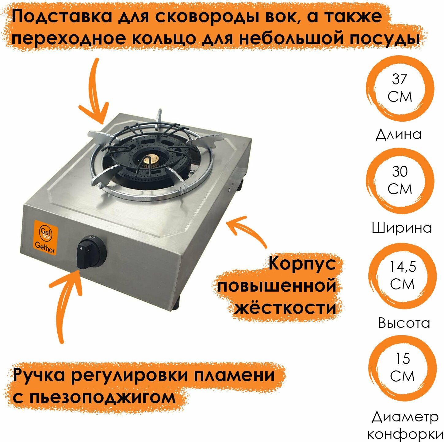 Плитка газовая настольная одноконфорочная GetHof 4,8 кВт GT-4,8PG (пропан) интересное: